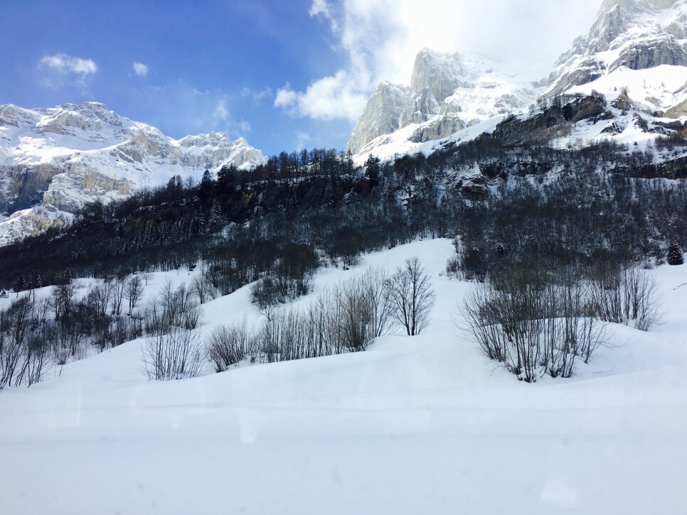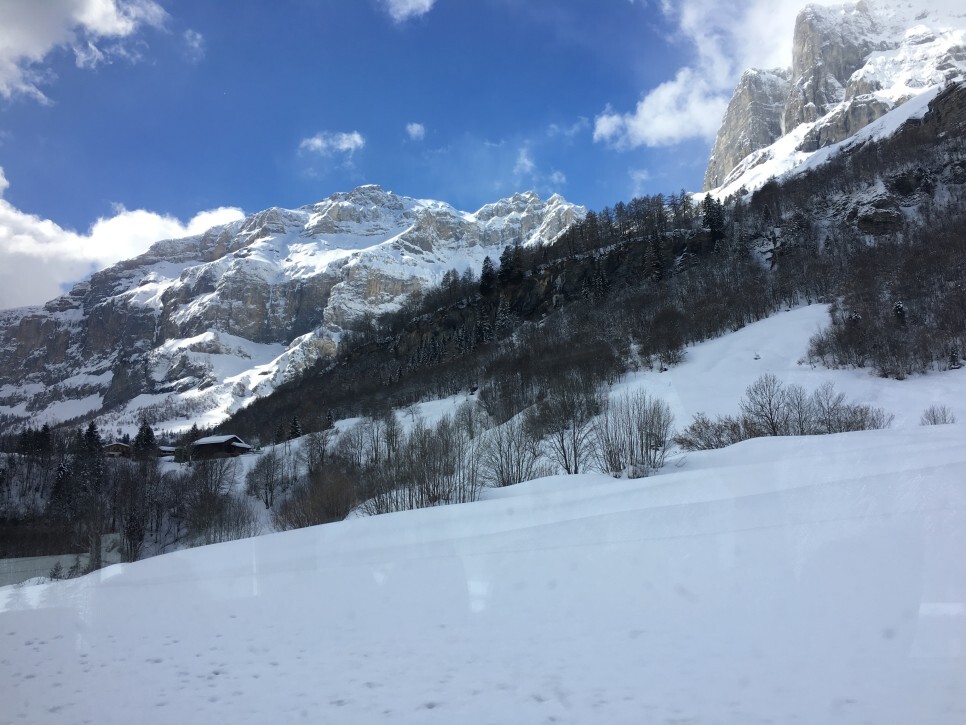 버스 타고 구불구불 산을 올라가야 하는데 눈이 많이 오는 날은 로이커바트까지 갈 수가 없다. 버스가 운행을 안해서.