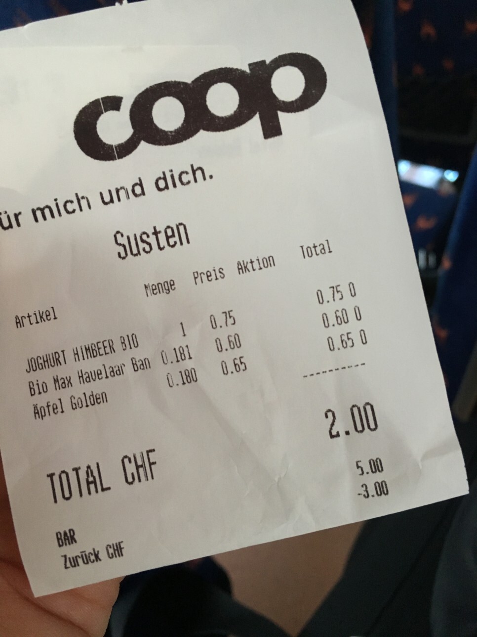 역시 스위스는 쿱이지 키키키키. 요거트랑 사과랑 바나나를 산거 같은데.